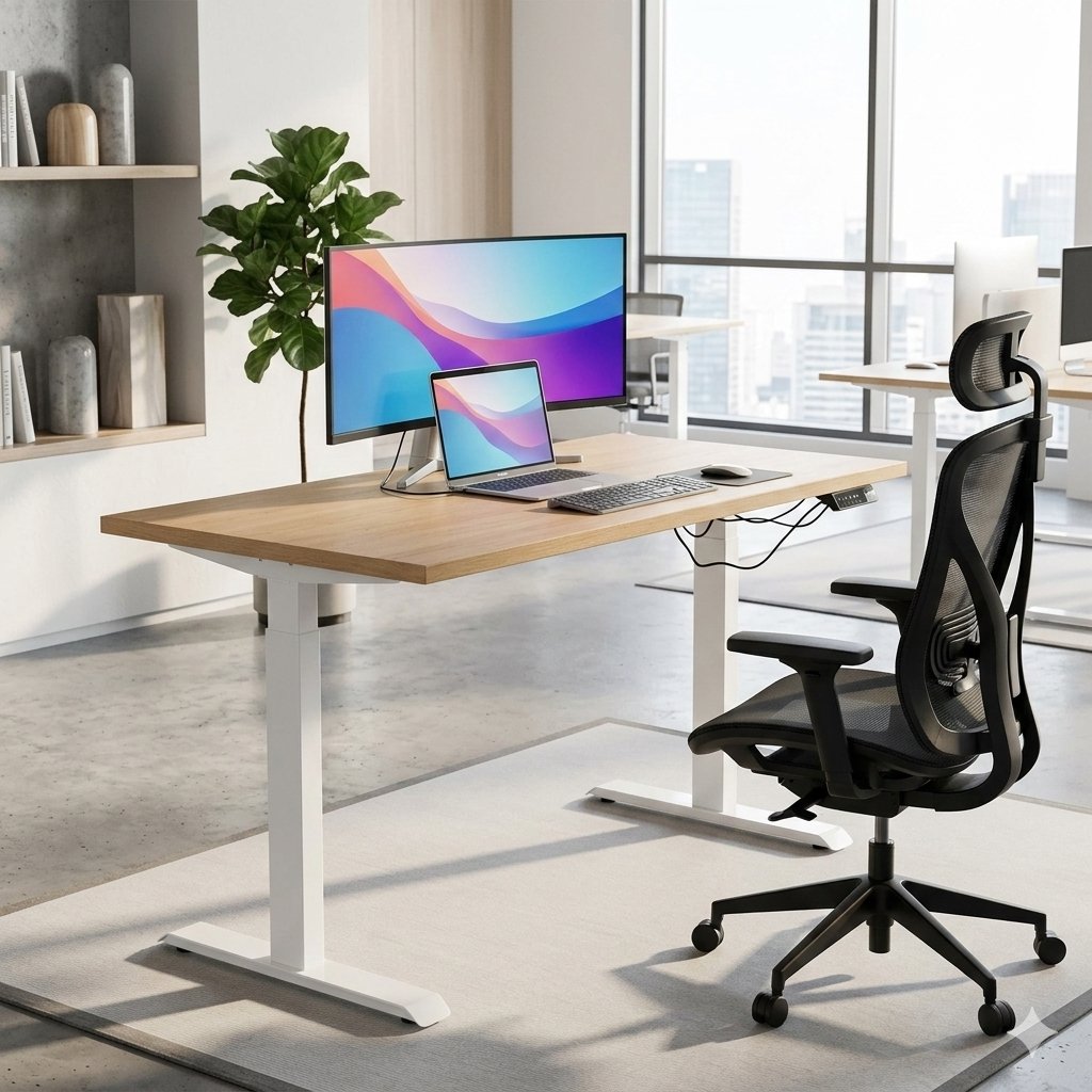 Wyposażony w dwa ciche silniki o poziomie hałasu poniżej 45 dB, system antykolizyjny, pamięć trzech ustawień wysokości oraz funkcję blokady przycisków – gwarantuje bezpieczeństwo, precyzję i wygodę użytkowania.